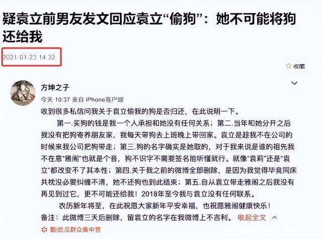 这场“夺狗大战”持续了三年,前男友每年都在微博喊话要狗,袁立却坚持狗是自己的,还说前男友“名字不吉利”。